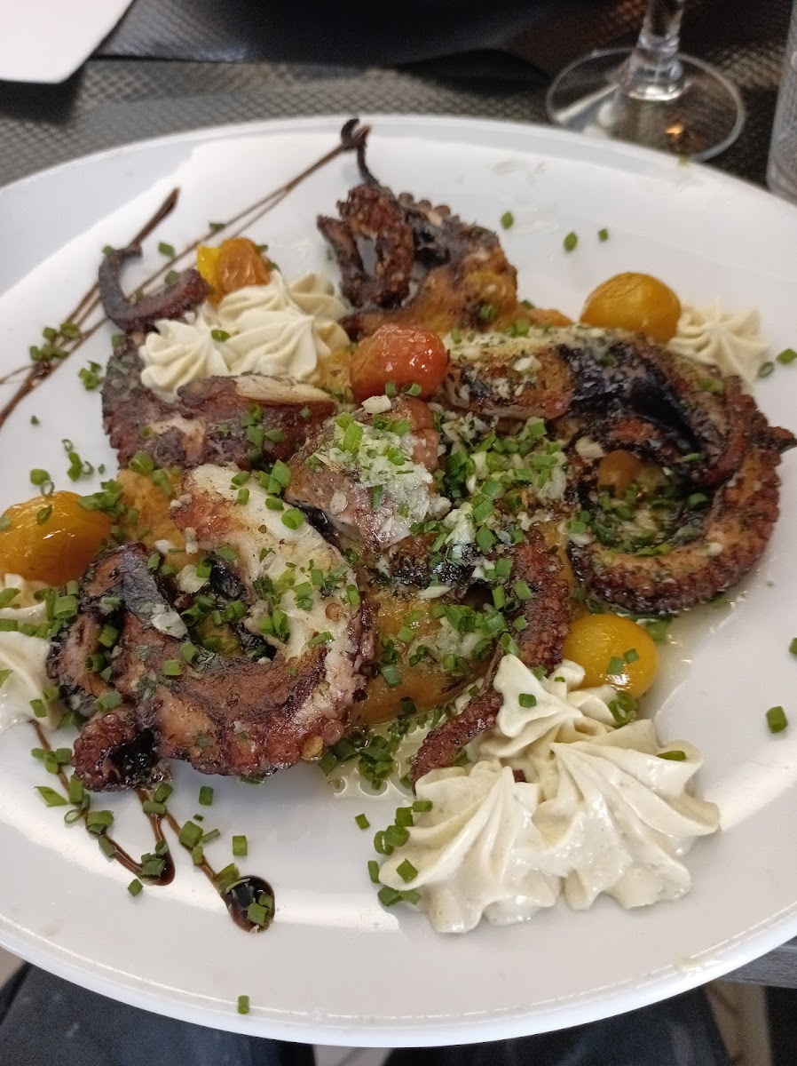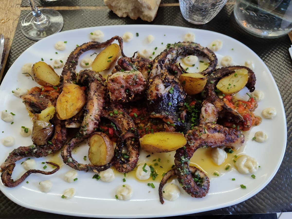 The menu at Le P'tit K Fait is thoughtfully curated, offering something for every palate. One of the standout dishes is the Café Gourmand, a perfect blend of coffee and mini desserts that turns a simple coffee break into a small celebration. If you're craving something hearty, the Une Bavette Avec Des Frites Maison Et Sa Petite Salade Verte is a must-try: tender steak paired with crispy homemade fries and a fresh green salad that balances flavors beautifully. Seafood lovers will appreciate the Poulpe Grillé, where the octopus is grilled to perfection, delivering a smoky, melt-in-your-mouth texture that pairs wonderfully with the restaurant’s selection of sides.